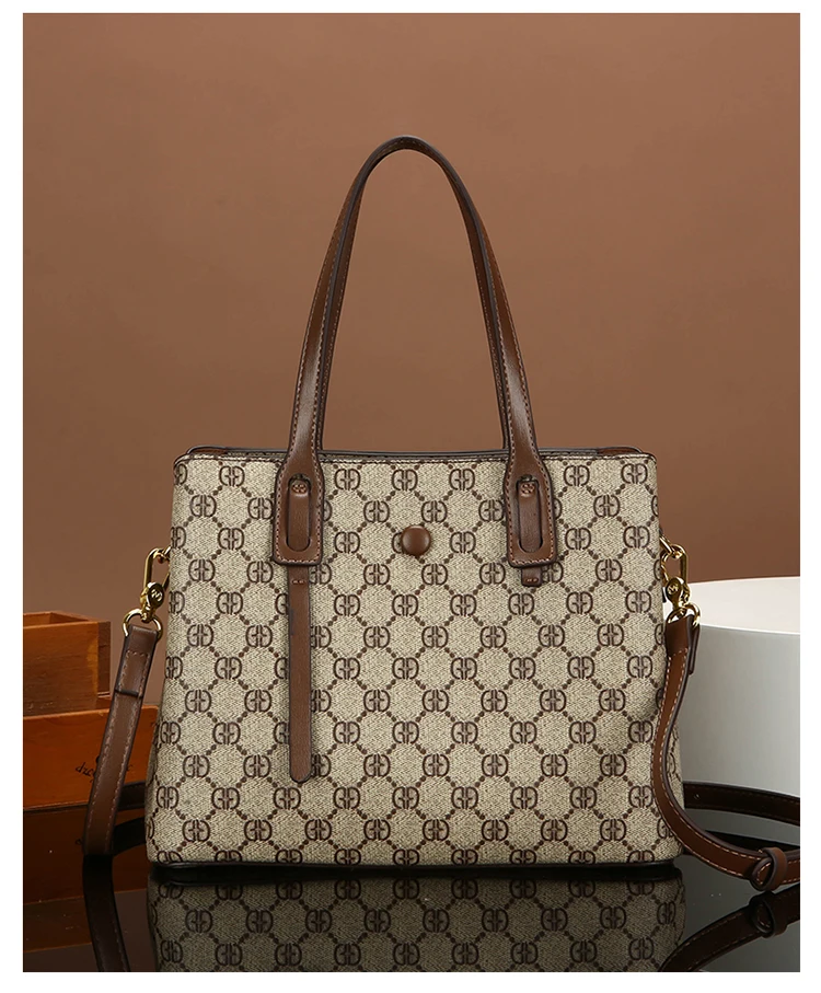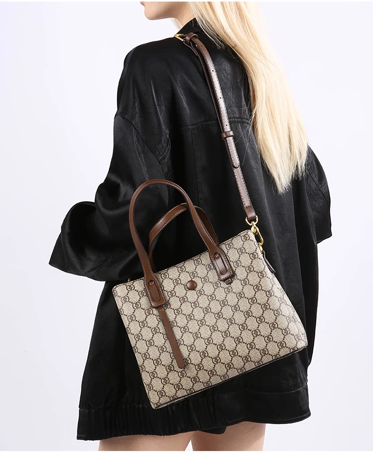 Featuring a timeless geometric print, this bag seamlessly transitions from casual outings to formal events.