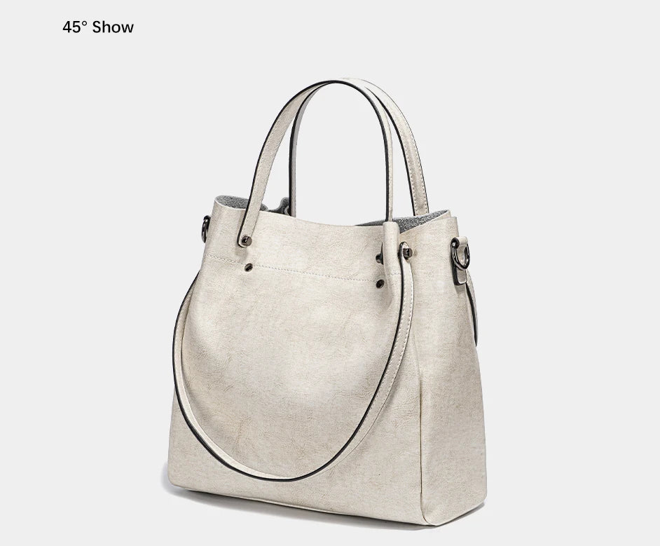 Genuine Leather Casual Tote – Women’s Shoulder & Crossbody Handbag